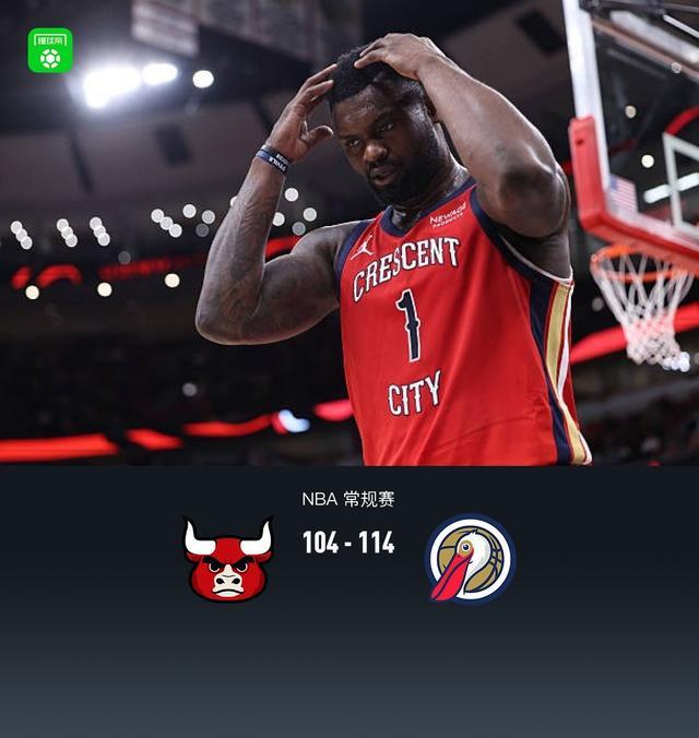 北京时间12月15日,NBA常规赛中,芝加哥公牛队对阵新奥尔良鹈鹕队。半场公牛队47-52领先鹈鹕队,最终公牛队以104-114领先鹈鹕队。芝加哥公牛队科比·怀特得到20分、5个篮板和5次助攻,赫尔特得到16分和4个篮板;新奥尔良鹈鹕队特雷·墨菲得到20分、10个篮板和2次助攻,菲尔斯得到20分、2个篮板和3次助攻。首节公牛队帕特里克·威廉姆斯拿下6分,鹈鹕队特雷·墨菲拿下9分。首节战罢,公牛队以26-21领先鹈鹕队。第二节,公牛队赫尔特拿下5分,鹈鹕队锡安威廉姆森拿下8分。半场结束,公牛队以47-52落后鹈鹕队。第三节,公牛队约什·圭迪拿下9分,鹈鹕队特雷·墨菲拿下6分。第三节结束,公牛队以75-76追上鹈鹕队。第四节公牛队赫尔特拿下8分,鹈鹕队菲尔斯拿下10分点。最终,公牛队以104-114不敌鹈鹕队。芝加哥公牛队全场数据科比怀特得到20分5篮板5助攻2抢断。芝加哥公牛队首发:科比·怀特、武切维奇、乔什·吉迪、布泽利斯、奥科罗;新奥尔良鹈鹕队:特雷·墨菲、菲尔斯、萨迪克·贝、赫伯特·琼斯、德里克·奎因。